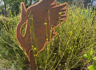 Conwy Culture Centre was included in the trail and has a large copper corvid and three cranes for you to find and enjoy. The cranes were added as a nod to the Cranes of Peace project and all three have lines from the project’s specially commissioned poem in English, Welsh and Japanese.