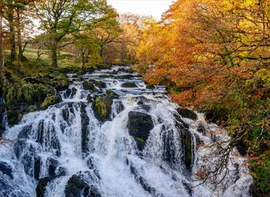 The Ty'n Llwyn car park is the starting point for a walking trail to the famous Swallow Falls waterfall. The Swallow Falls Trail goes through woodland to a viewpoint over the waterfall - you get a great view from this side of the river so don’t forget your camera.